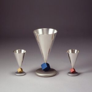 גביע קידוש GC-08, כסף ואלומיניום, גובה 24 ס"מ. אפשר להוסיף פמוטים באותו סגנון GC-12, GC-21