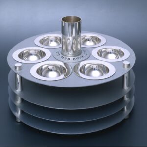 צלחת פסח PS-01, צלחת פסח בצורת מגן דוד, סדרה חתומה וממוספרת , עבודת יד, כסף, גובה 24 ס"מ