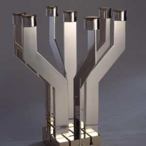 Candlesticks CH-12, Sterling silver and anodized aluminum, H-10.6″ Matching kiddush cup available